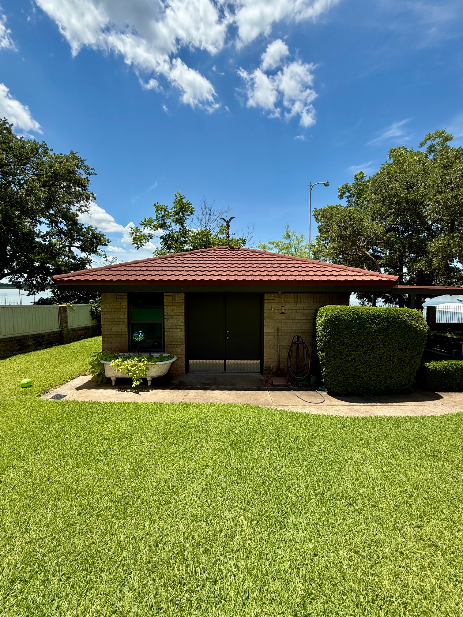 LAKESIDE RETREAT Situated on the tranquil shores of Hubbard Creek Lake, this exceptional 3 bedroom, 2 bath, residence offers refined lakeside living in the coveted Village Inn community. Designed for both relaxation and recreation, this home boasts a meticulously manicured lawn and a spacious, open layout that effortlessly blends comfort with elegance. Spacious bedrooms for retreating every evening, woodburning fireplace, eat in kitchen ideal for casual dining or elevated entertaining complete with lake views. Step outside to your private oasis with the back porch extending the entire length of the house providing the perfect blend of comfort and function. Boat dock with double electric doors, 2 separate lifts one designed for a pontoon, including crappie house for the avid angler. Pump house with sprinkler system keeping the lush lawn in pristine condition. A dedicated outdoor sitting area provides a peaceful space to unwind all enclosed by a decorative privacy fence. Storage building with covered awning currently serving as an outdoor grilling area and entertaining space. Secured by electric gate ensures additional security and privacy the moment you arrive. Lake living at its best-private, practical, and ready for your next adventure. Whether you’re hosting weekend guests or enjoying peaceful sunset evenings, this property offers a rare opportunity to own a premier waterfront retreat in one of the area’s most sought-after enclaves. Too many features to list, schedule your private showing today