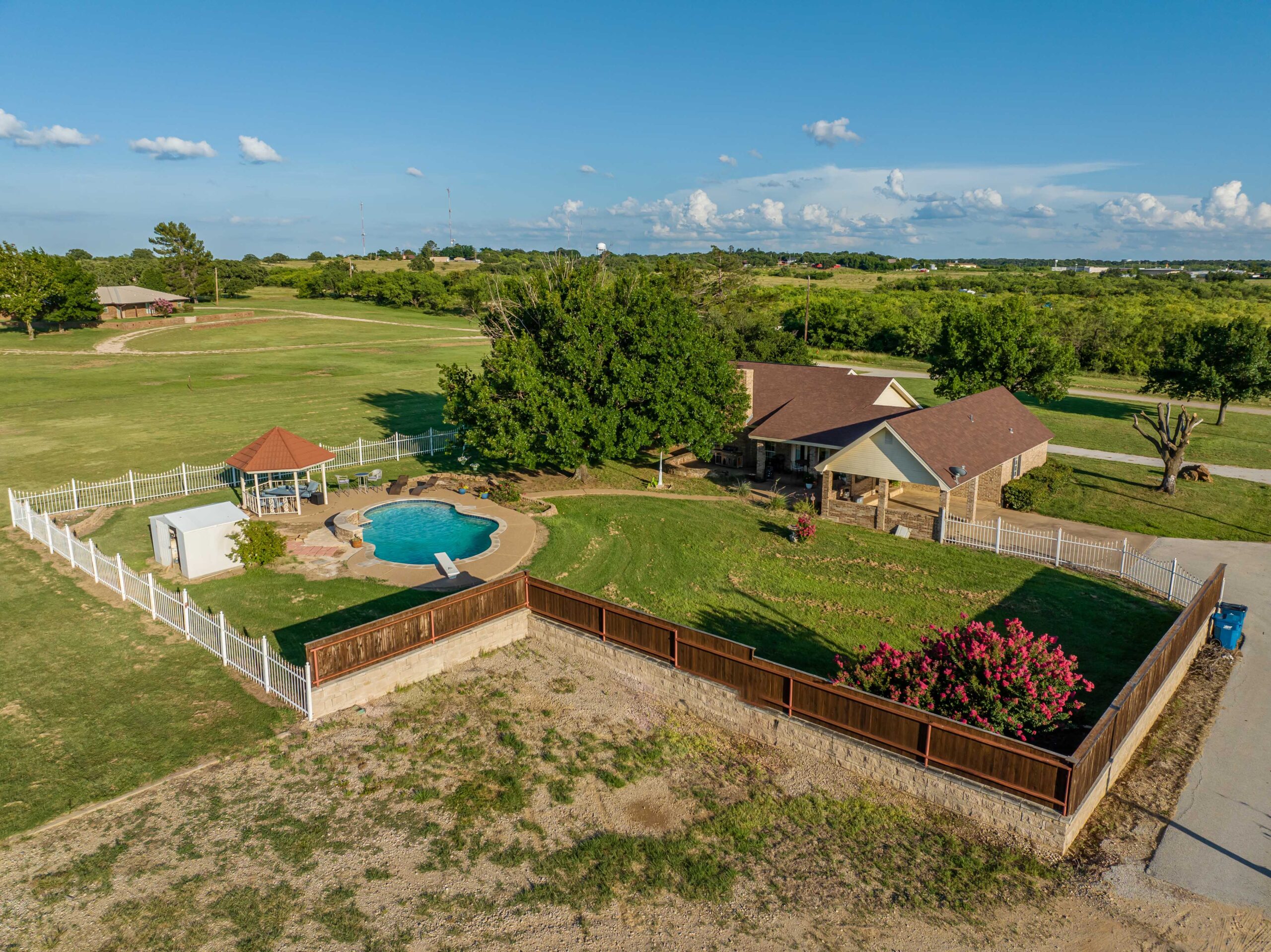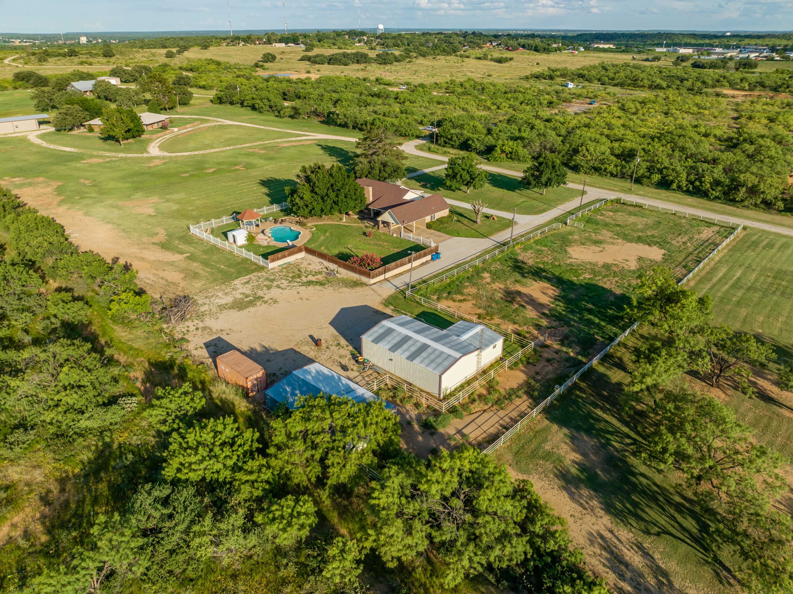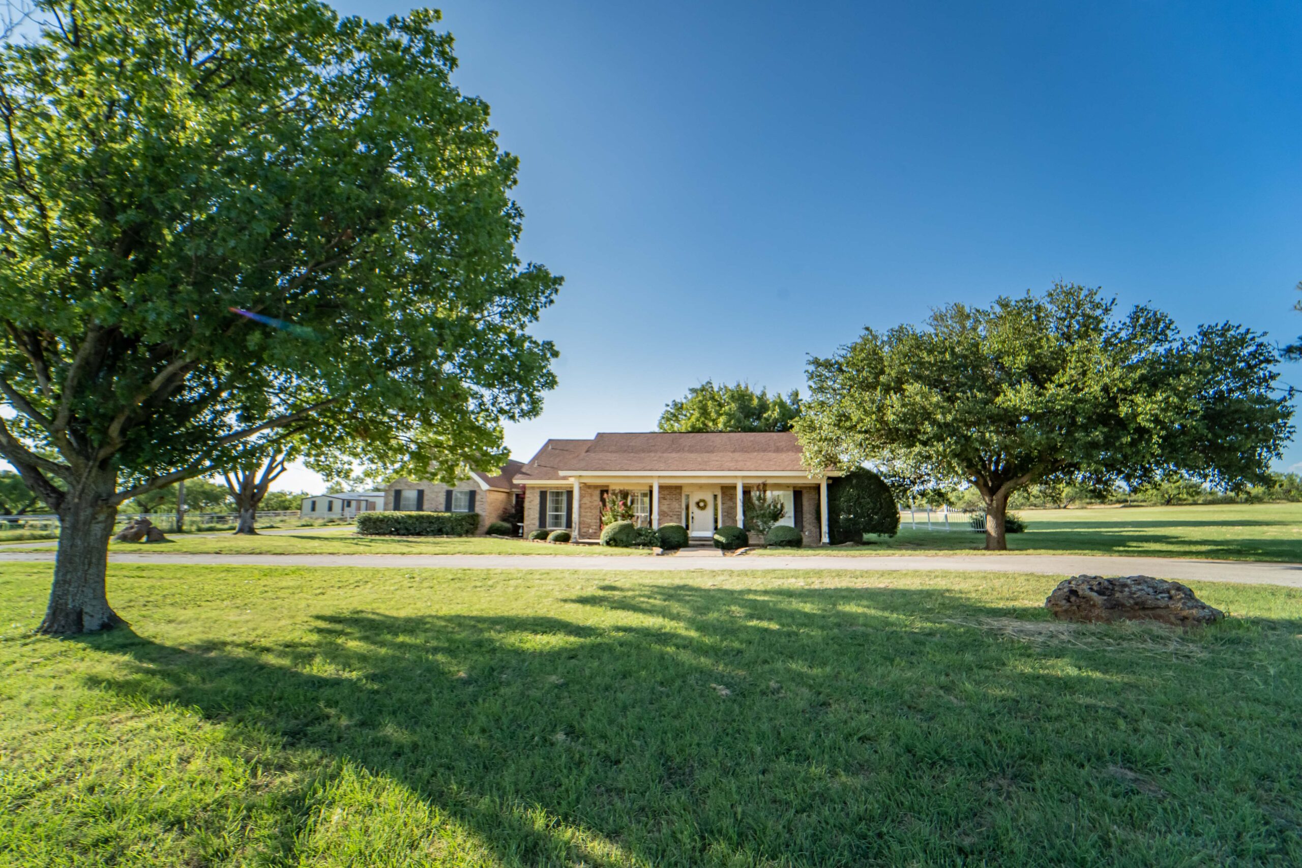 Welcome to this spacious 2,763 sq ft home offering the perfect blend of comfort, functionality, and country living located couple minutes from town. Featuring 4 bedrooms and 3 full baths, this property is ready that perfect family as well as equestrian enthusiast. Step inside to an inviting living area with abundant natural light, a cozy stone wood burning fireplace, and built ins. The chef’s kitchen boasts electric appliances, ample cabinetry, and a generous island perfect for gathering. The primary suite offers a private retreat with a spacious walk-in shower and double sink vanity. Outside enjoy your own private oasis with a sparkling swimming pool perfect for cooling off on hot Texas afternoons or hosting weekend BBQs. Equestrian facilities include a horse arena, and a barn with a bathroom and an office making this property move-in ready for horse lovers. The grounds provide space for riding, training, or simply enjoying the scenic outdoors. Additional highlights include a spacious garage, dedicated laundry room, storage, and plenty of parking for trailers or guests. Conveniently located with easy access to local amenities while offering the peace and privacy of country living. Don’t miss this rare opportunity to own your dream home with all the amenities you need. Schedule your private showing today!