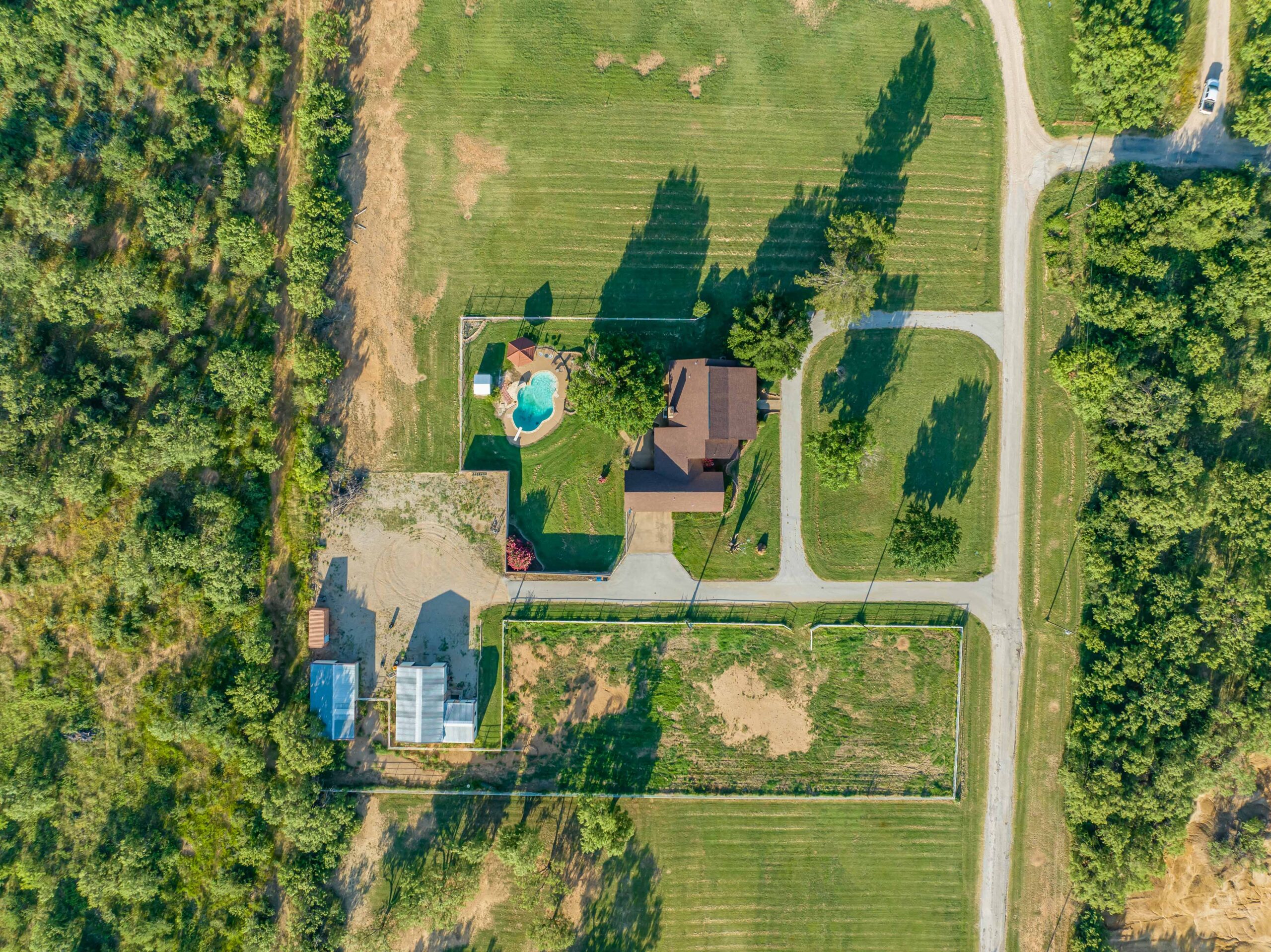 Garage/Covered Parking, Swimming Pool, Backyard, Shop/Shed, Barn, Mature Trees, Covered Parking, Prime Location, Small Acreage